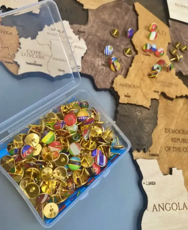Pins with flags of 194 countries